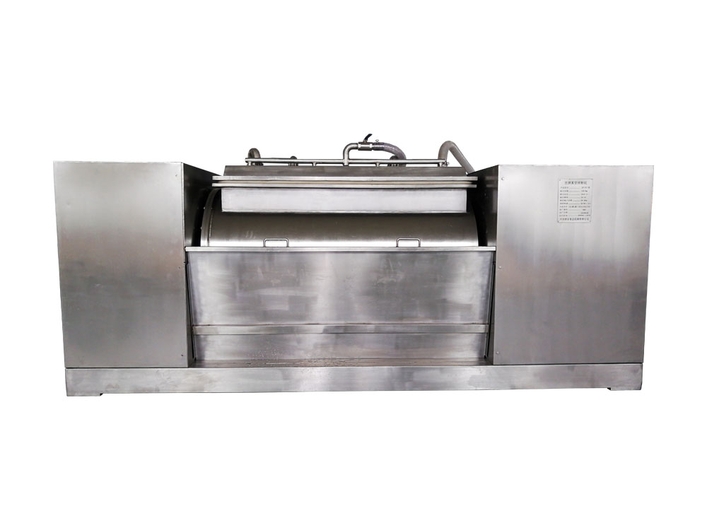 →臥式真空和面機系列  →型號50/75/100/150/200/300型  →功能  主要用來和制餃子皮、餛飩皮、鮮食面、水煮面、掛面等,若更換攪拌器,可適用于速凍行業的各種面食制品的加工。  →特色  1、配備智能觸控顯示屏,參數自由設定,可手動攪拌、可一鍵攪拌。并可根據工藝設定和面時間和真空度。  2、設備由PLC控制,可實現自動起蓋、自動計量加水、自動翻斗、自動進粉、抽真空和面(拌粉)、自動排面功能。  3、獨特的密封結構,有效防止面團受到污染,進一步提高食品安全。  4、和面過程在真空負壓下進行,使面粉中的蛋白質在短時間、充分的吸收水分,形成面筋網絡,從而使面團外表光滑、內部結構均勻,透明度高、口感好。  5、可定制面斗冷卻系統,使成品面團溫度恒定,確保批量生產的產品質量穩定。  6、設備主體采用不銹鋼制造,符合現行有關食品衛生標準。  →主要技術參數產品型號額定容量(kg)攪拌轉速(rpm)主電機(kW)副電(kW)外形尺寸(長×寬×高)ZHW  50型50板式40 攪棒44/887.51.11470×932×1483ZHW  75型75板式40 攪棒44/88111.851440×890×1655ZHW 100型100板式40 攪棒44/88111.851440×890×1794ZHW 150型150板式40 攪棒44/88221.851764×1070×1815ZHW 200型200板式40 攪棒44/88221.851964×1070×1815ZHW 300型300板式40 攪棒44/883432074×1170×2022板式攪拌器滾杠-真空油條包子狼牙棒攪拌器